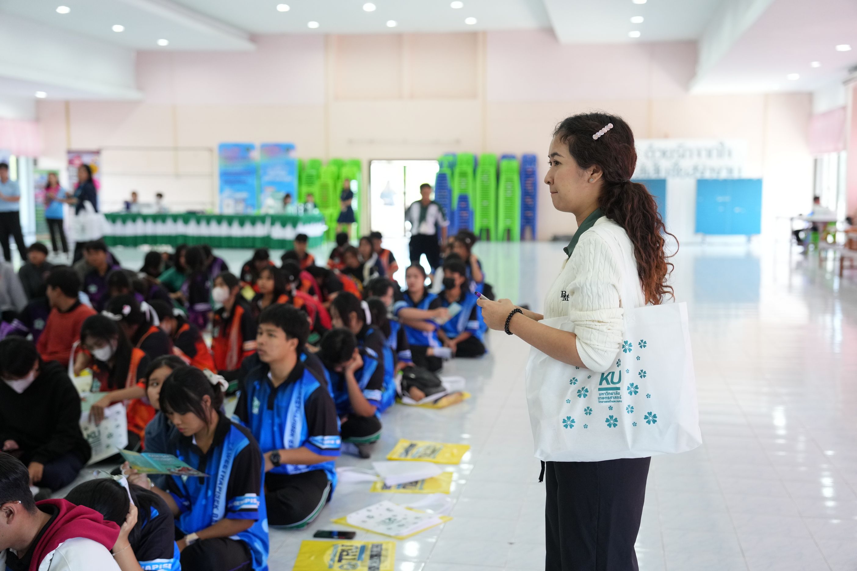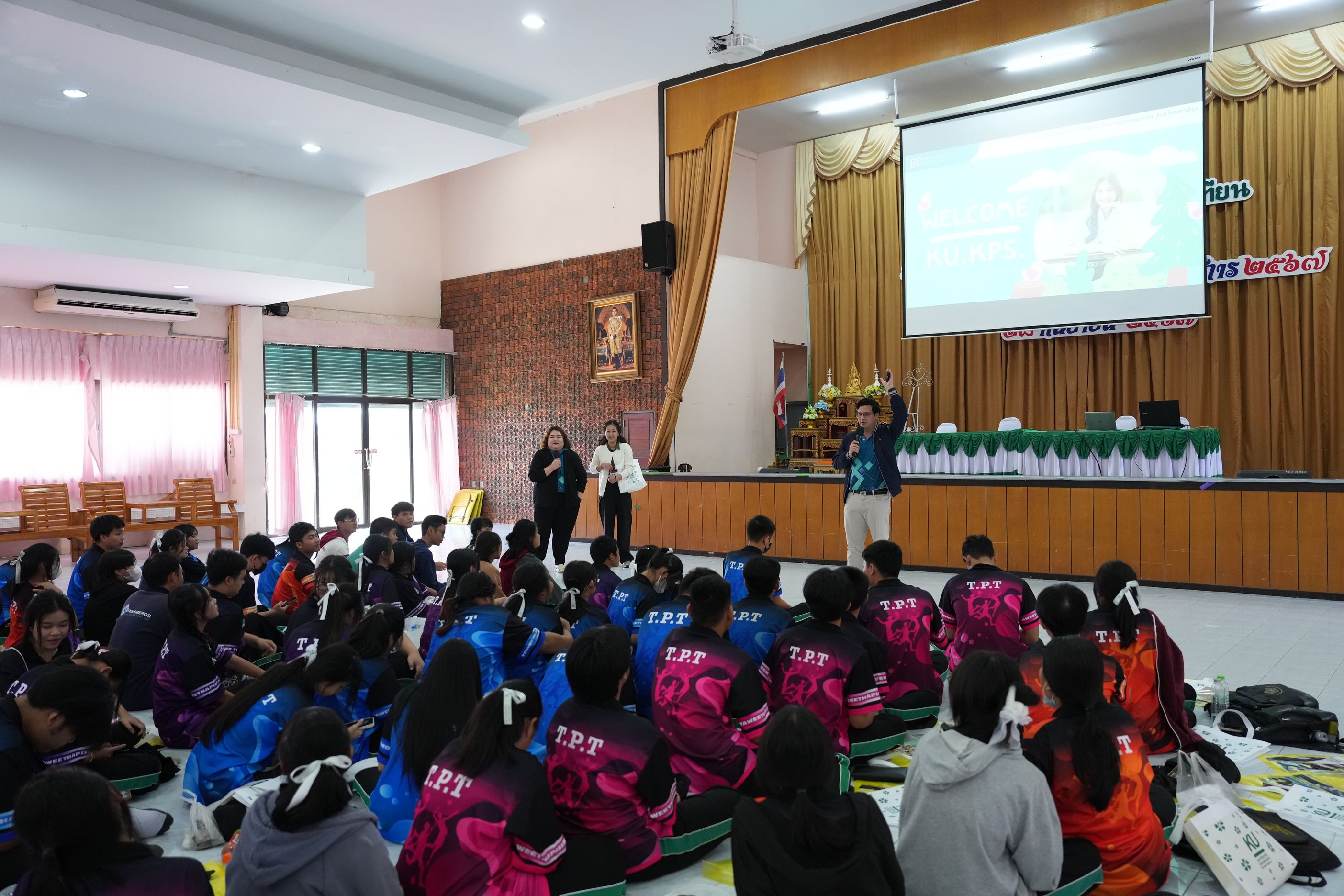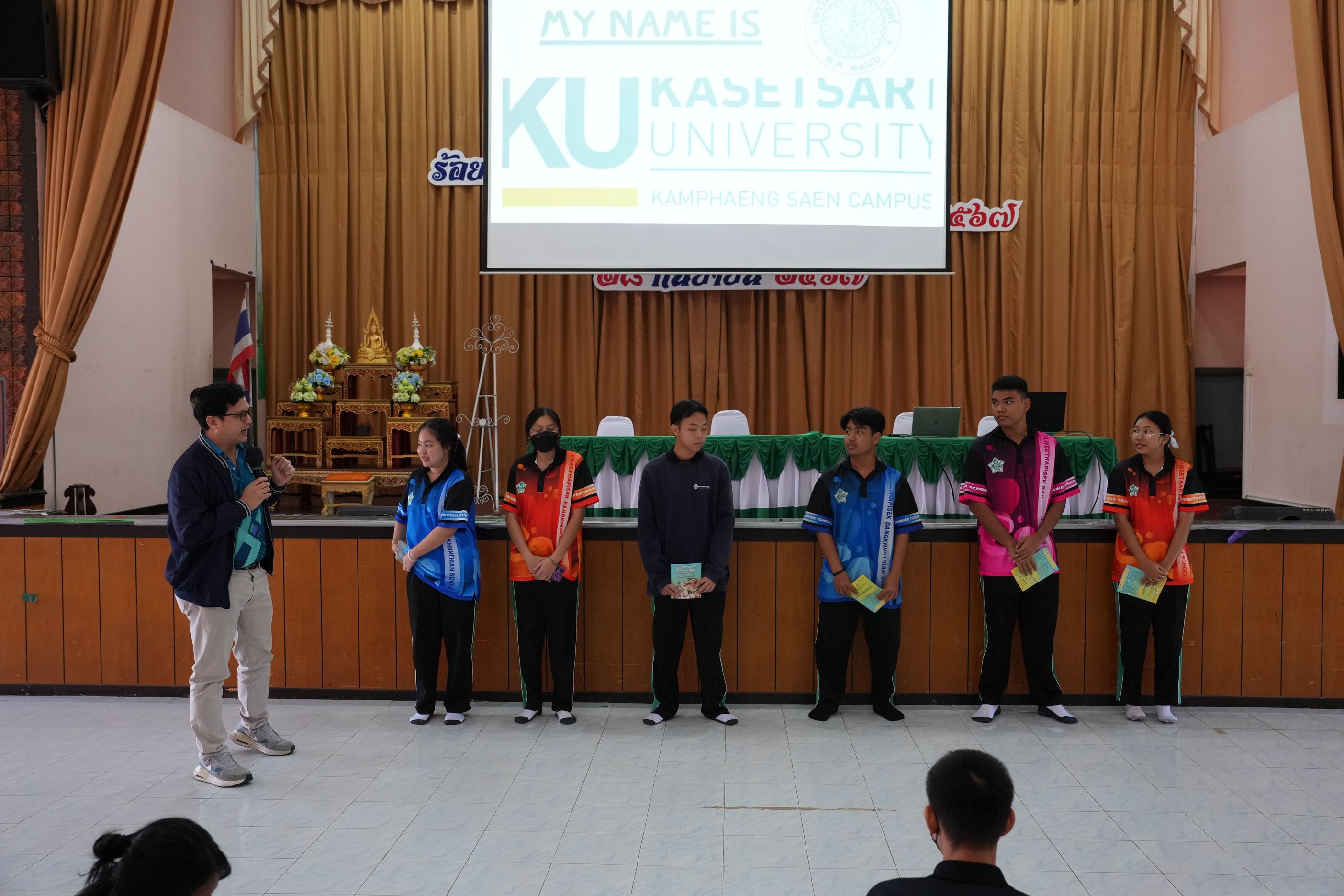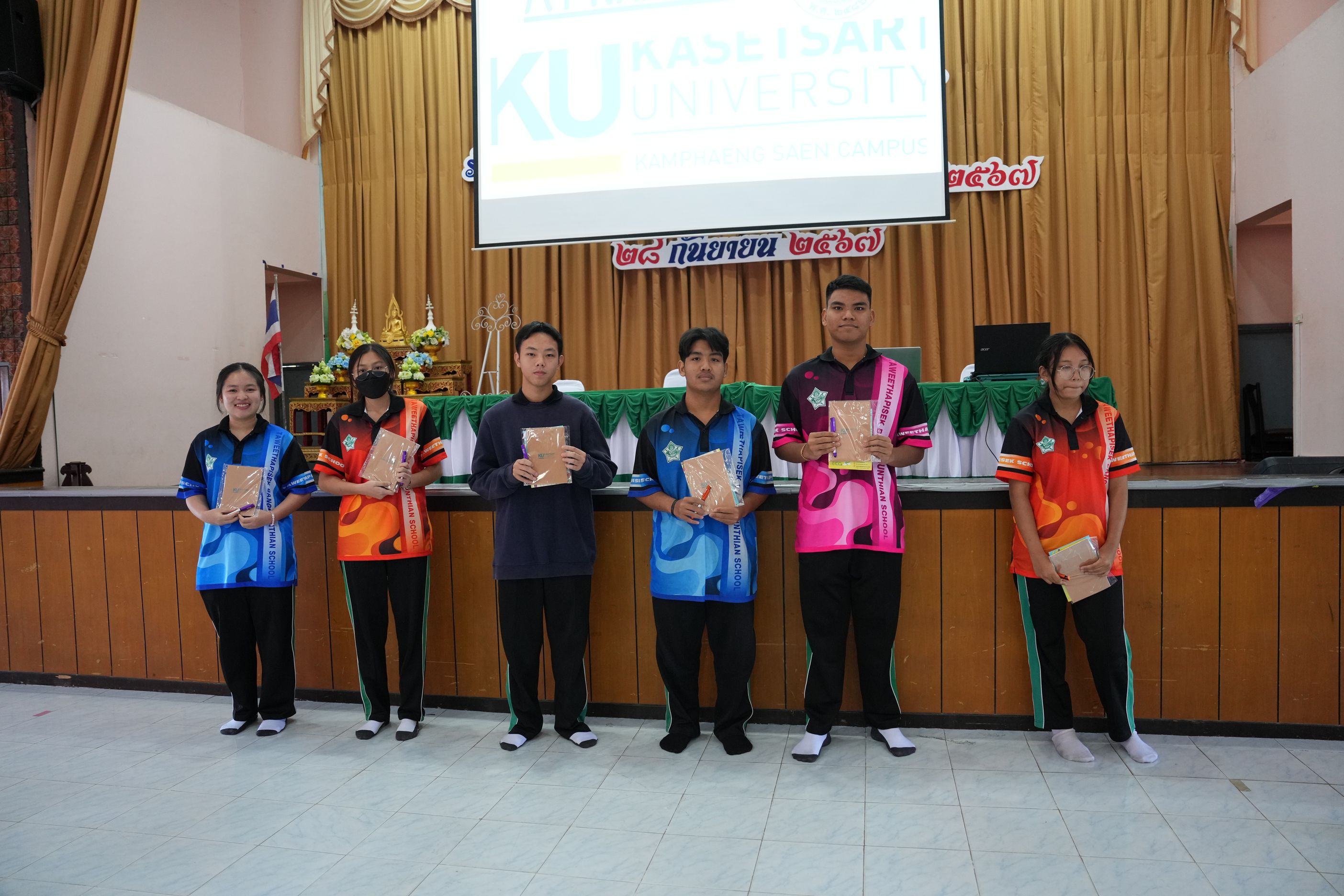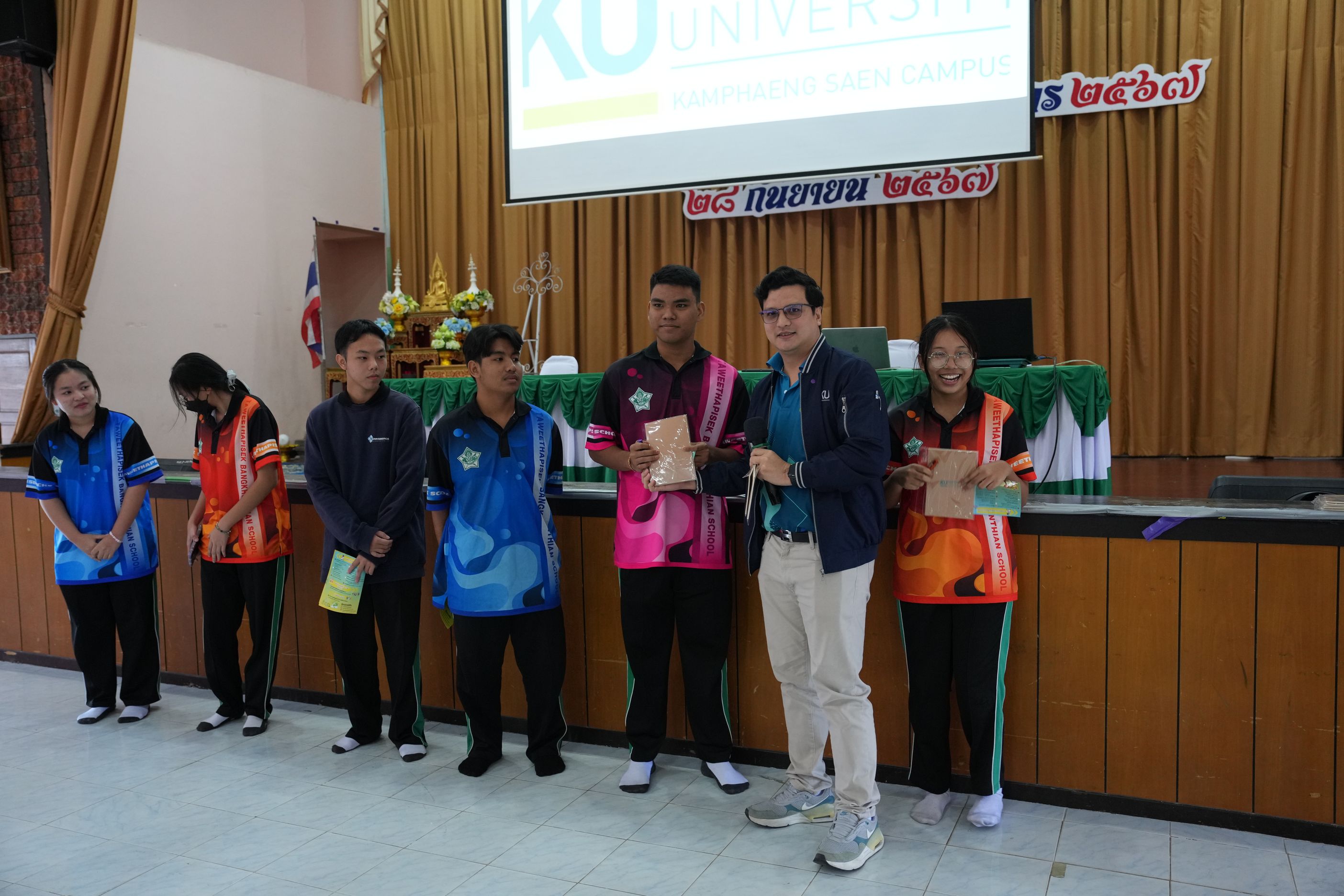 ฉบับที่ 11/2567 เมื่อวันที่ 29 พฤศจิกายน 2567 นำโดย ผศ.ดร.พจมาน พูลมี ผู้ช่วยอธิการบดีฝ่ายการศึกษา และการเรียนรู้ตลอดชีวิต วิทยาเขตกำแพงแสน และทีมงานบริการการศึกษา มหาวิทยาลัยเกษตรศาสตร์ วิทยาเขตกำแพงแสน ได้เข้าร่วมกิจกรรมแนะแนวการศึกษาต่อสำหรับนักเรียน ประจำปีการศึกษา 2567 ณ โรงเรียนทวีธาภิเศก บางขุนเทียน ในการบรรยายหัวข้อ เเนะนำการศึกษาต่อมหาวิทยาลัยเกษตรศาสตร์ วิทยาเขตกำแพงแสน โดยมีวัตถุประสงค์เพื่อเป็นข้อมูลประกอบการตัดสินใจของนักเรียนชั้นมัธยมศึกษาปีที่ 6 ทางโรงเรียนจึงได้จัดกิจกรรมเเนะเเนวต่อสำหรับนักเรียน ประจำปีการศึกษา 2567 ซึ่งมีนักเรียนชั้นมัธยมศึกษาปี 6 โรงเรียนทวีธาภิเศกบางขุนเทียน ที่มีความสนใจในการเข้าร่วมกิจกรรมในครั้งนี้