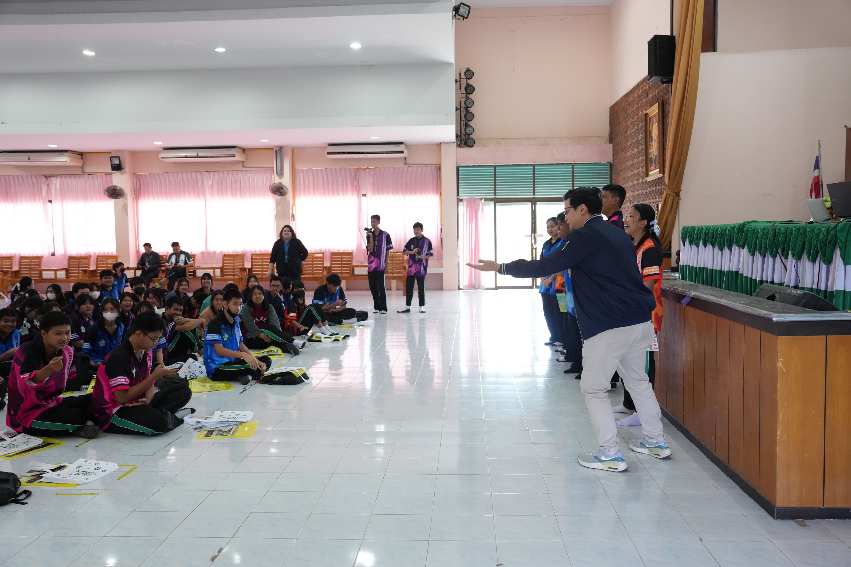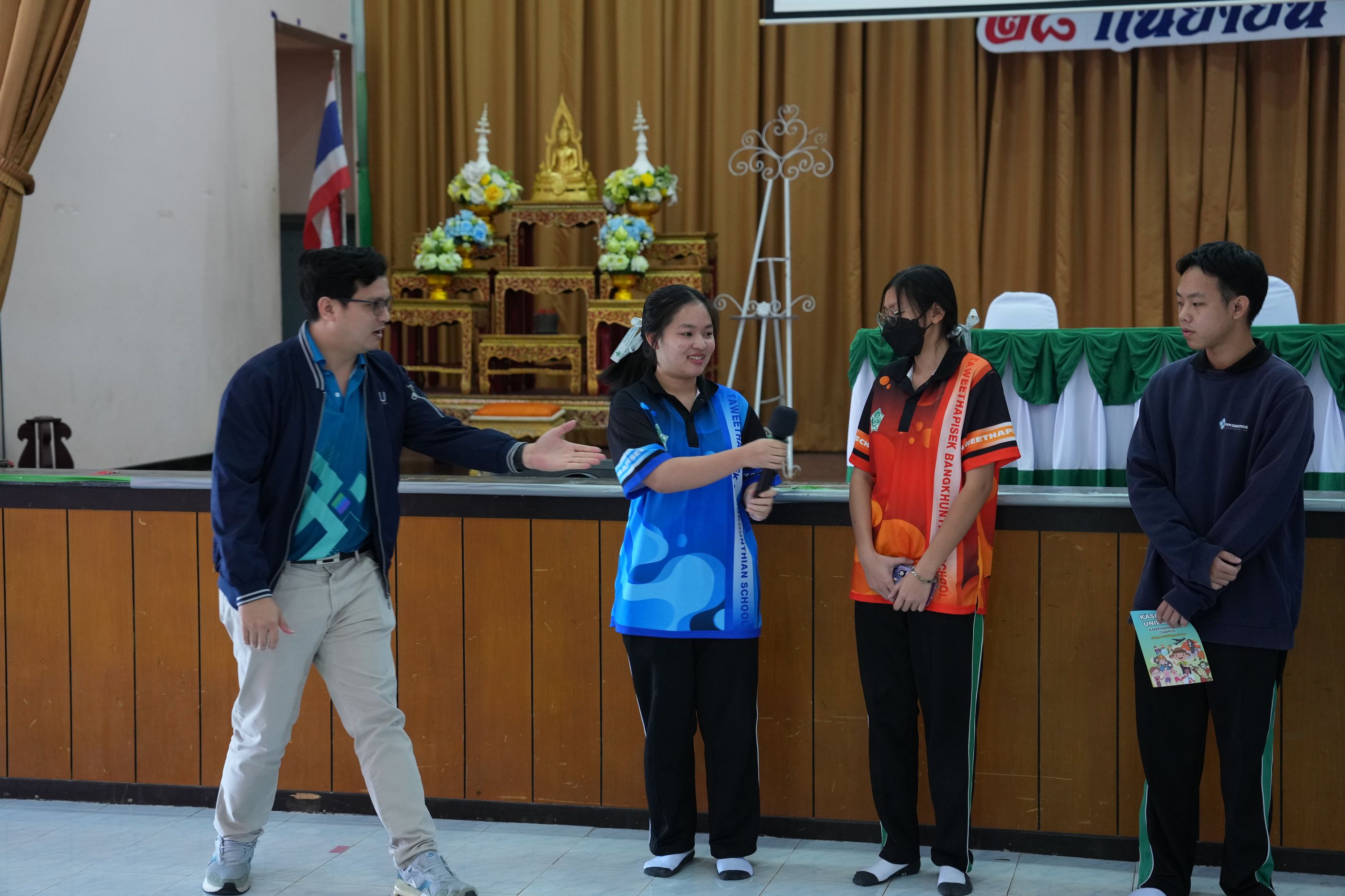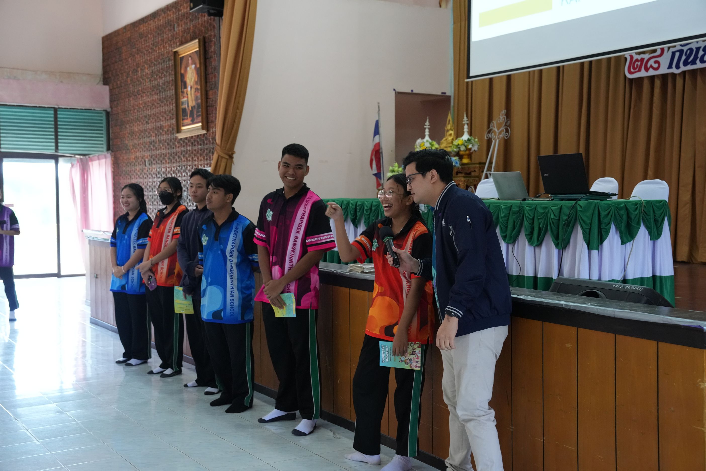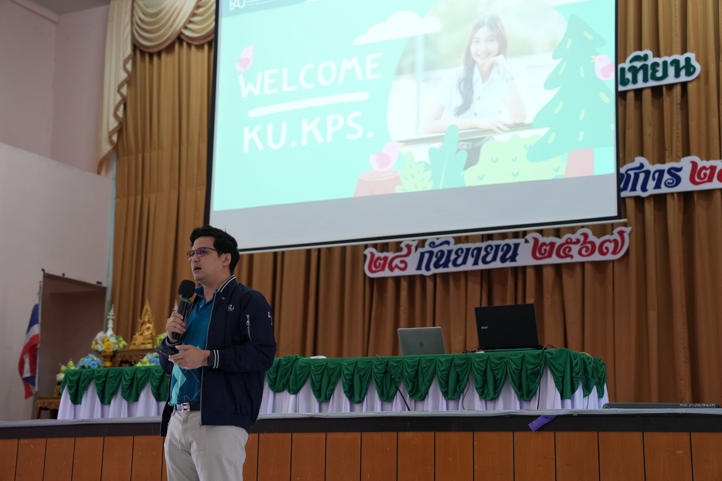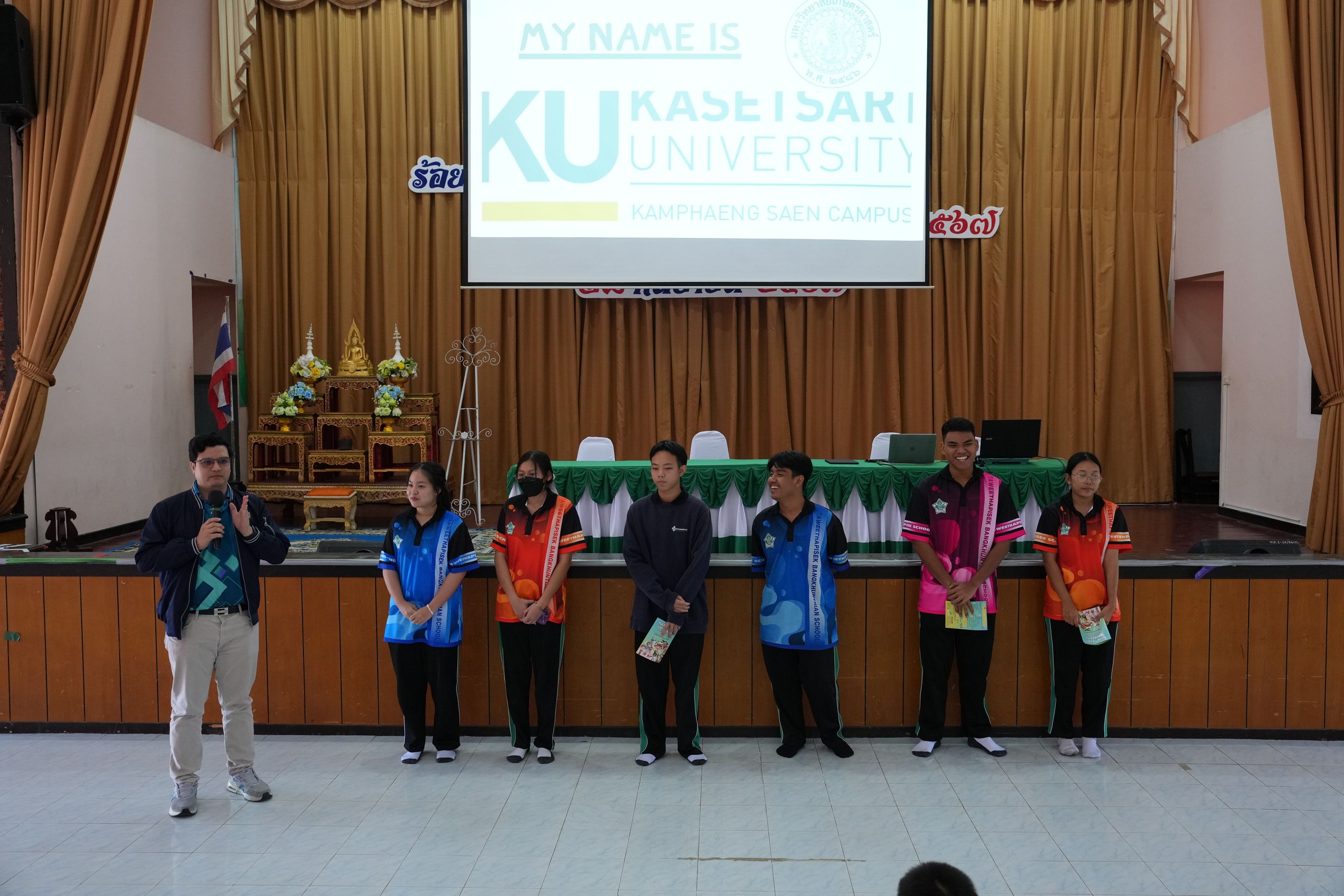 ฉบับที่ 11/2567 เมื่อวันที่ 29 พฤศจิกายน 2567 นำโดย ผศ.ดร.พจมาน พูลมี ผู้ช่วยอธิการบดีฝ่ายการศึกษา และการเรียนรู้ตลอดชีวิต วิทยาเขตกำแพงแสน และทีมงานบริการการศึกษา มหาวิทยาลัยเกษตรศาสตร์ วิทยาเขตกำแพงแสน ได้เข้าร่วมกิจกรรมแนะแนวการศึกษาต่อสำหรับนักเรียน ประจำปีการศึกษา 2567 ณ โรงเรียนทวีธาภิเศก บางขุนเทียน ในการบรรยายหัวข้อ เเนะนำการศึกษาต่อมหาวิทยาลัยเกษตรศาสตร์ วิทยาเขตกำแพงแสน โดยมีวัตถุประสงค์เพื่อเป็นข้อมูลประกอบการตัดสินใจของนักเรียนชั้นมัธยมศึกษาปีที่ 6 ทางโรงเรียนจึงได้จัดกิจกรรมเเนะเเนวต่อสำหรับนักเรียน ประจำปีการศึกษา 2567 ซึ่งมีนักเรียนชั้นมัธยมศึกษาปี 6 โรงเรียนทวีธาภิเศกบางขุนเทียน ที่มีความสนใจในการเข้าร่วมกิจกรรมในครั้งนี้
