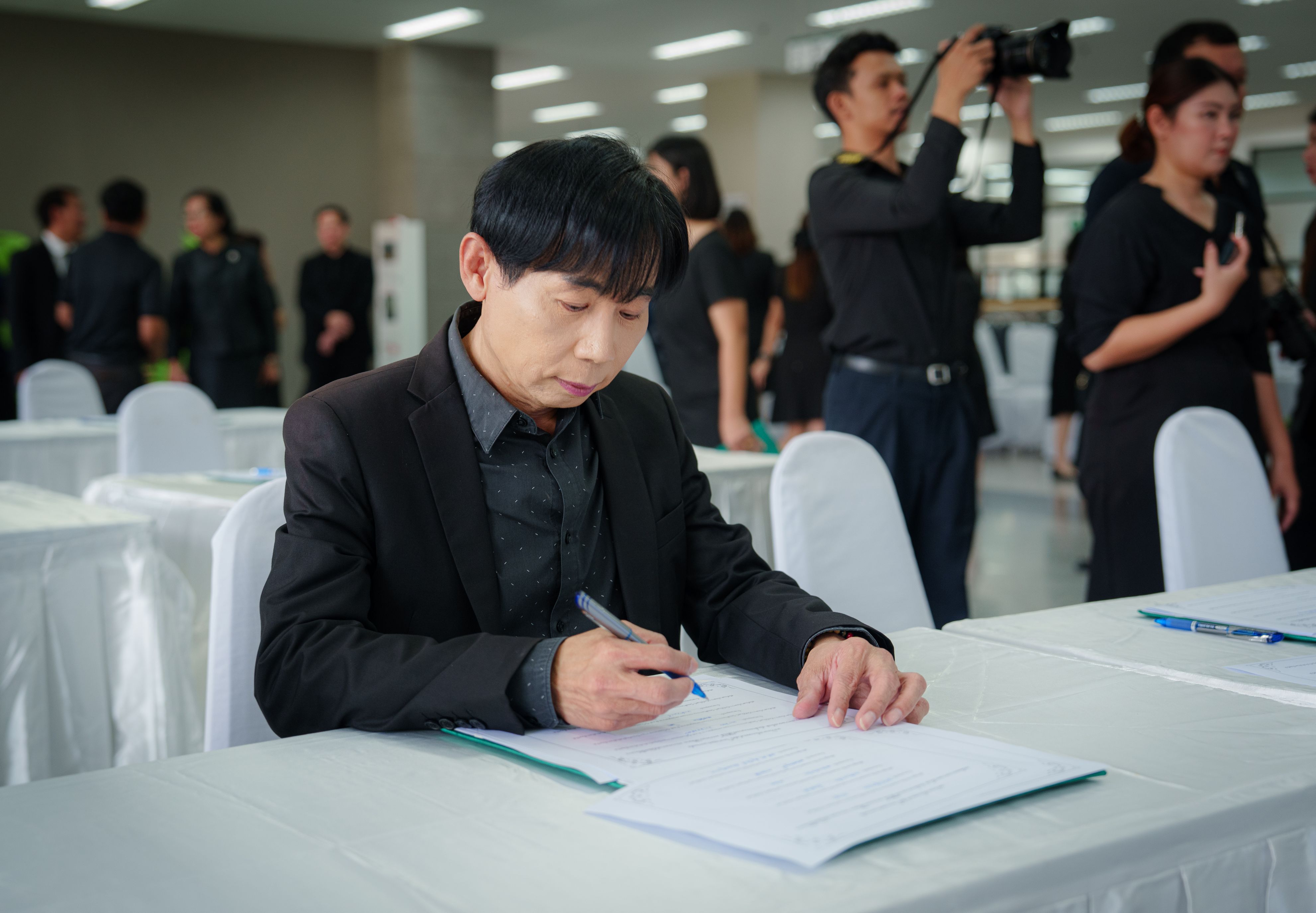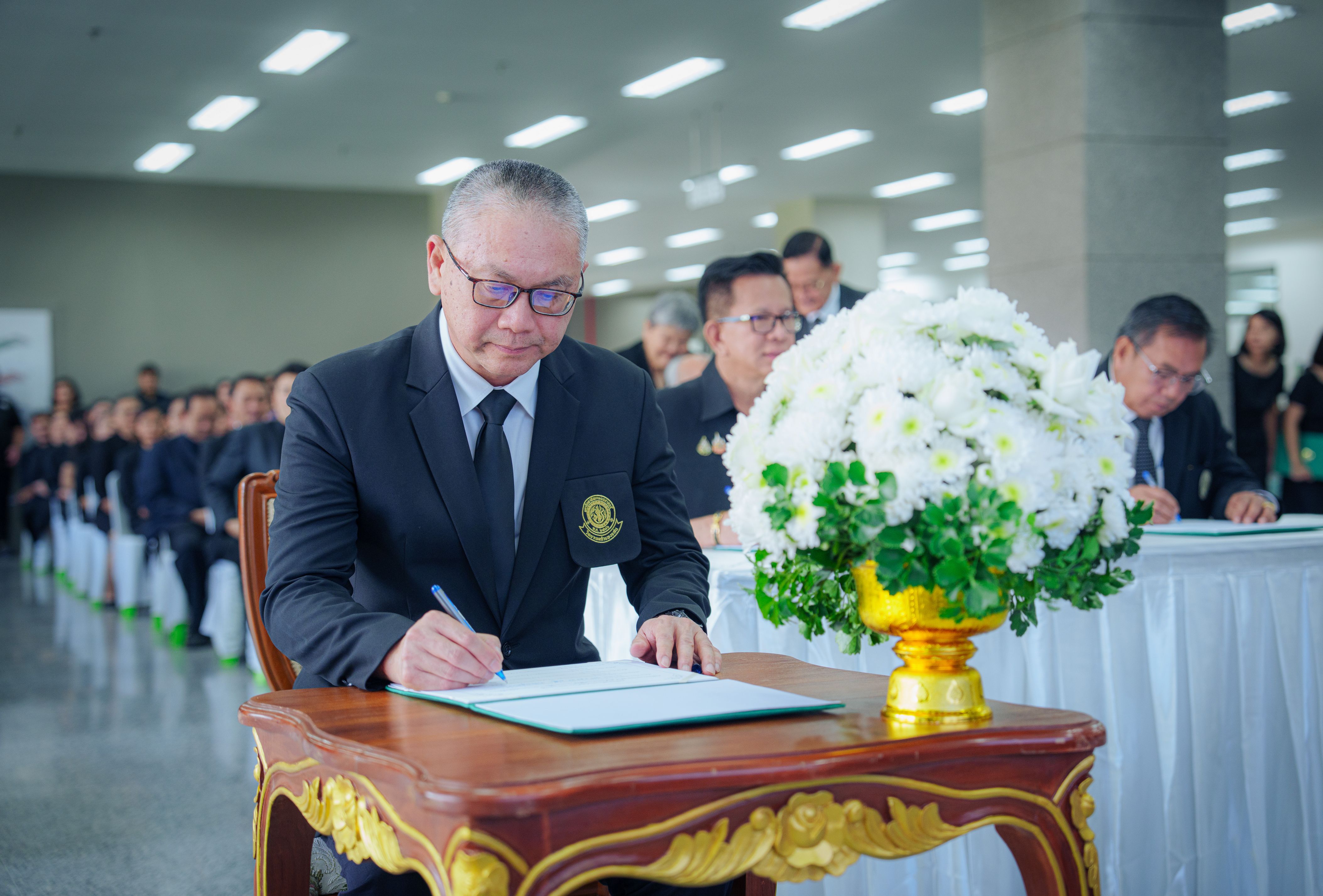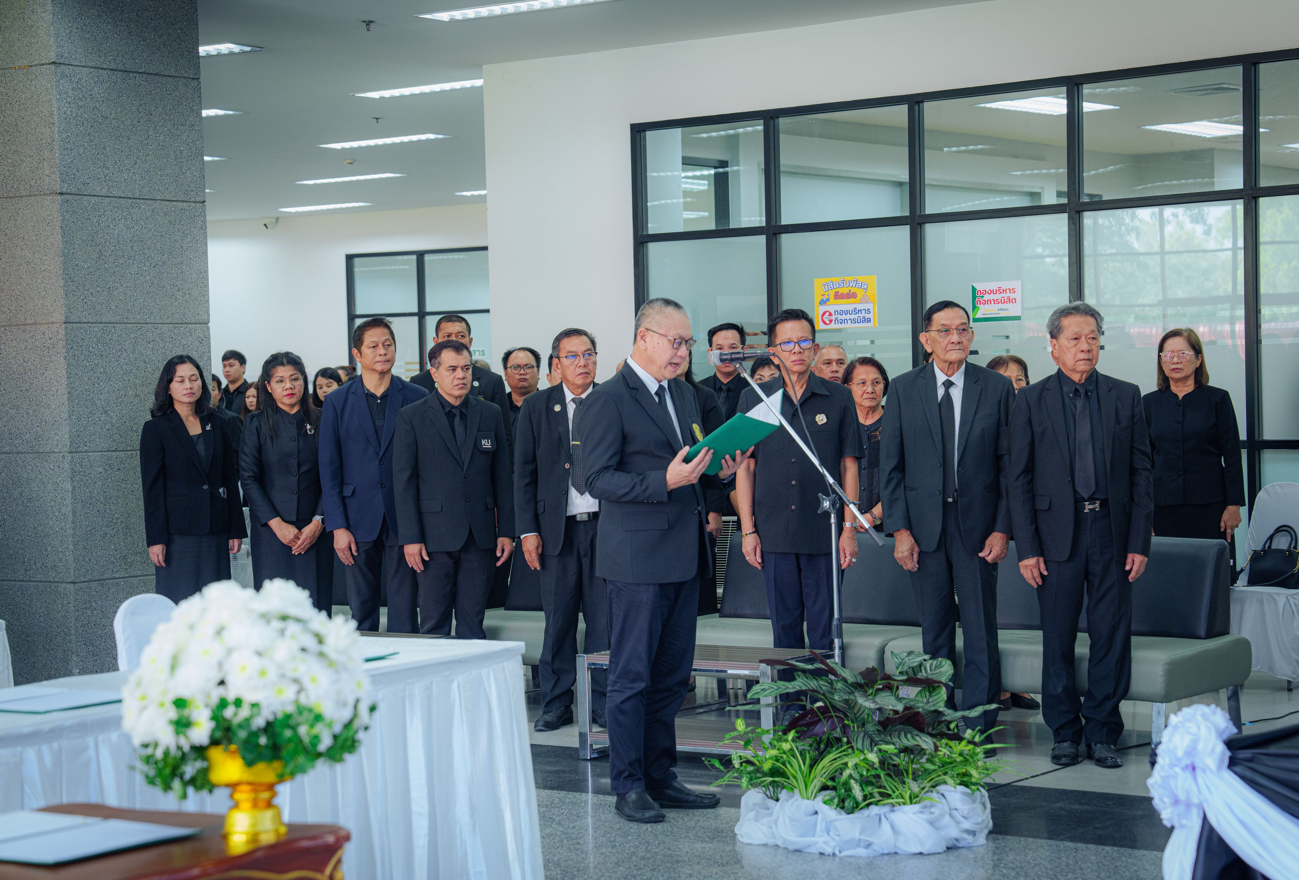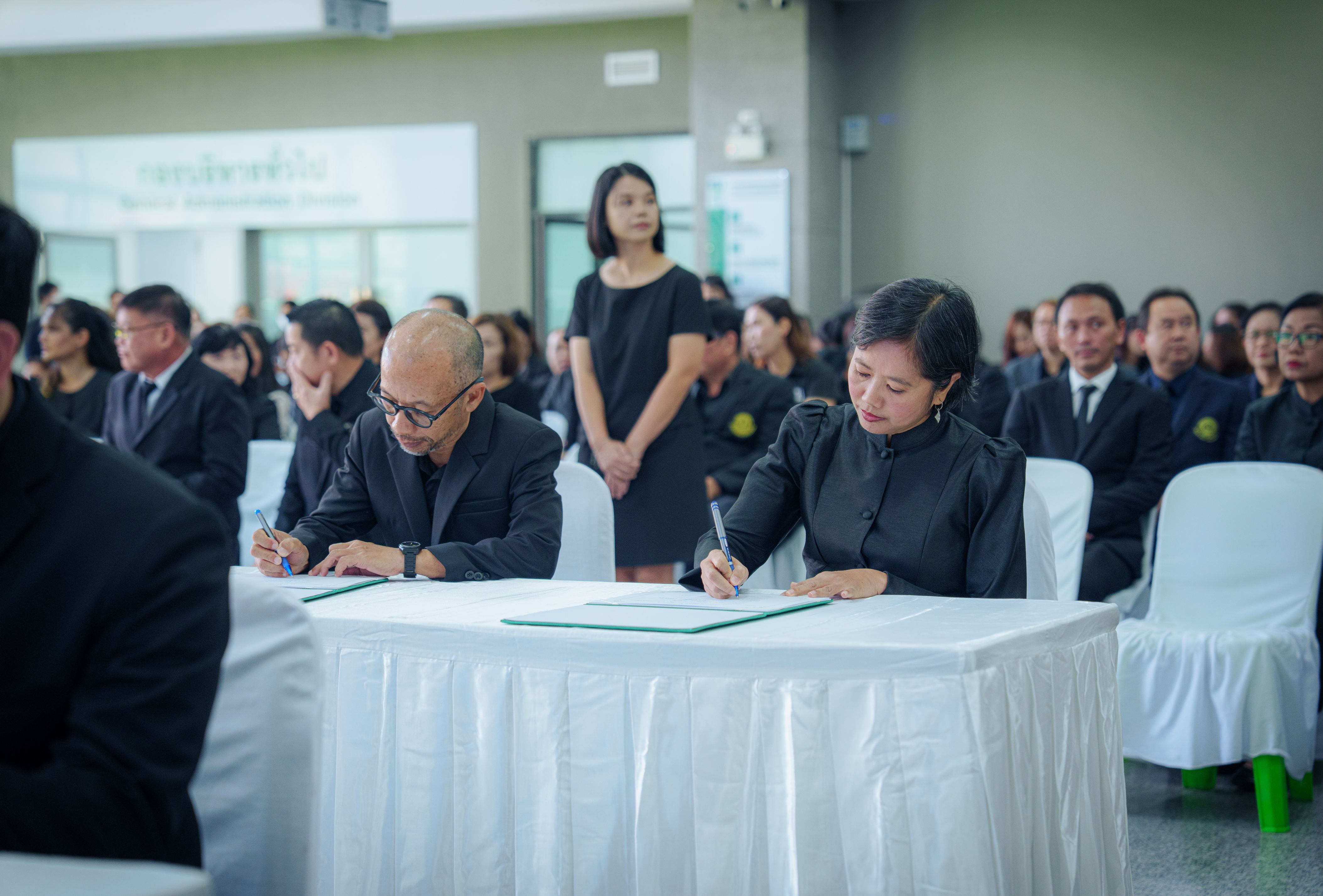 ภายในพิธีมีคณะผู้บริหารส่วนงาน คณาจารย์ บุคลากร และนิสิต ร่วมกันแสดงความอาลัยด้วยความสำนึกในพระมหากรุณาธิคุณอันหาที่สุดมิได้ โดยพร้อมใจกันยืนสงบนิ่งและลงนามถวายความอาลัย