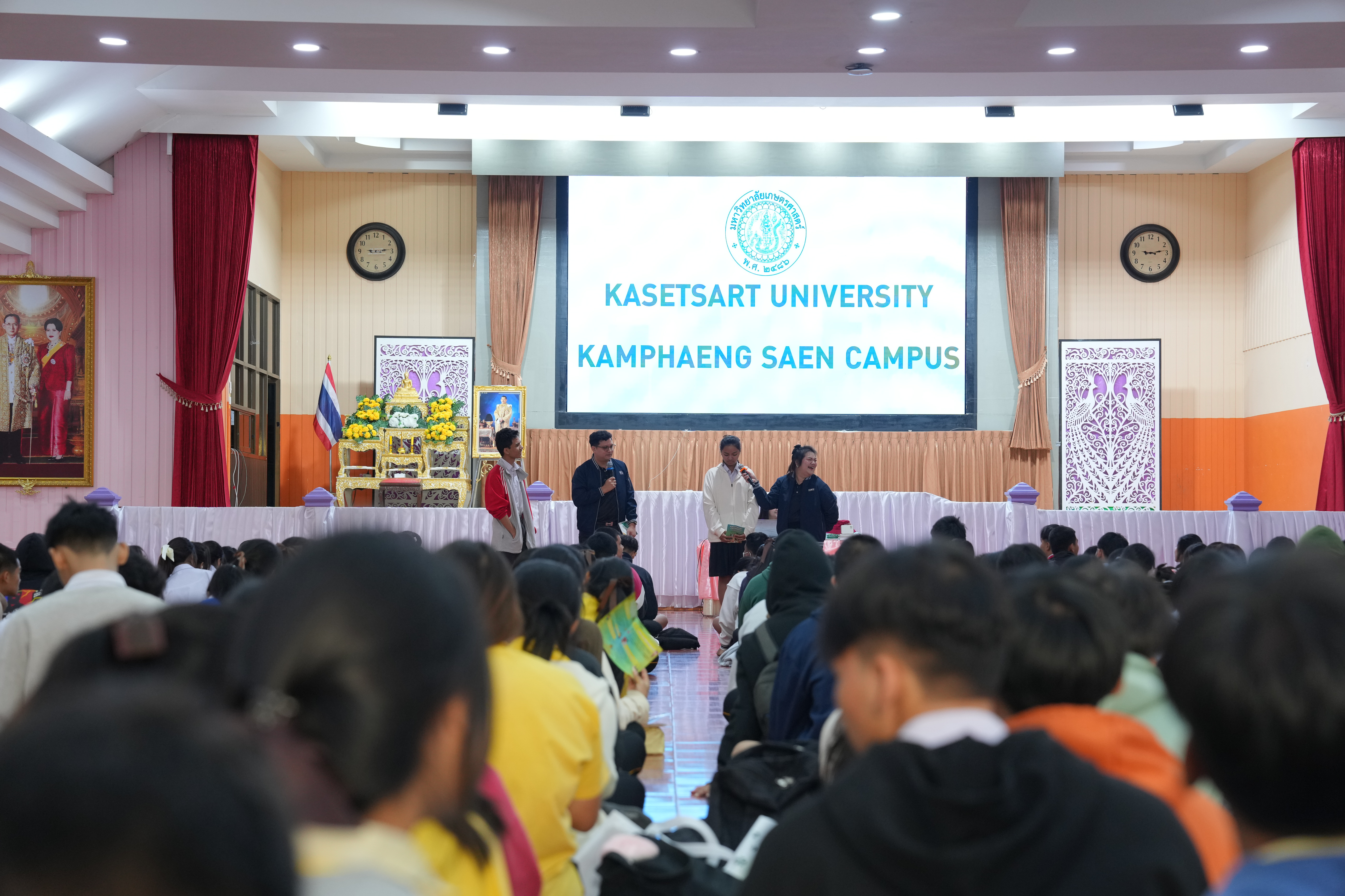ฉบับที่ 44/2568 เมื่อวันที่ 7 มกราคม 2569 นายพัลลภ สุวรรณฤกษ์ หัวหน้างานบริการการศึกษา พร้อมด้วยบุคลากรงานบริการการศึกษา กองบริหารการศึกษา และคณาจารย์ นิสิต มหาวิทยาลัยเกษตรศาสตร์ วิทยาเขตกำแพงแสน เข้าร่วมโครงการแนะแนวการศึกษาต่อเชิงรุก (Road Show) ประจำปีการศึกษา 2569 ณ โรงเรียนท่ามะกาวิทยาคม จังหวัดกาญจนบุรี การจัดกิจกรรมในครั้งนี้มีวัตถุประสงค์เพื่อประชาสัมพันธ์ข้อมูลการศึกษาต่อในระดับอุดมศึกษา หลักสูตรการเรียนการสอน แนวทางการรับเข้าศึกษา ระบบการคัดเลือกบุคคลเข้าศึกษาในสถาบันอุดมศึกษา (TCAS) รวมถึงแนวทางการเตรียมความพร้อมก่อนเข้าศึกษาต่อในมหาวิทยาลัย ให้แก่นักเรียนระดับชั้นมัธยมศึกษาปีที่ 4–6 เพื่อเป็นข้อมูลประกอบการตัดสินใจเลือกศึกษาต่อให้สอดคล้องกับความถนัดและความสนใจของตนเอง ทั้งนี้ กิจกรรมดังกล่าวได้รับความสนใจจากนักเรียนระดับชั้นมัธยมศึกษาปีที่ 4–6 เข้าร่วมจำนวนทั้งสิ้น 350 คน บรรยากาศเป็นไปด้วยความเรียบร้อยและได้รับการตอบรับเป็นอย่างดี สะท้อนถึงความมุ่งมั่นของมหาวิทยาลัยเกษตรศาสตร์ วิทยาเขตกำแพงแสน ในการสร้างโอกาสทางการศึกษาและการเข้าถึงข้อมูลการศึกษาต่ออย่างทั่วถึง